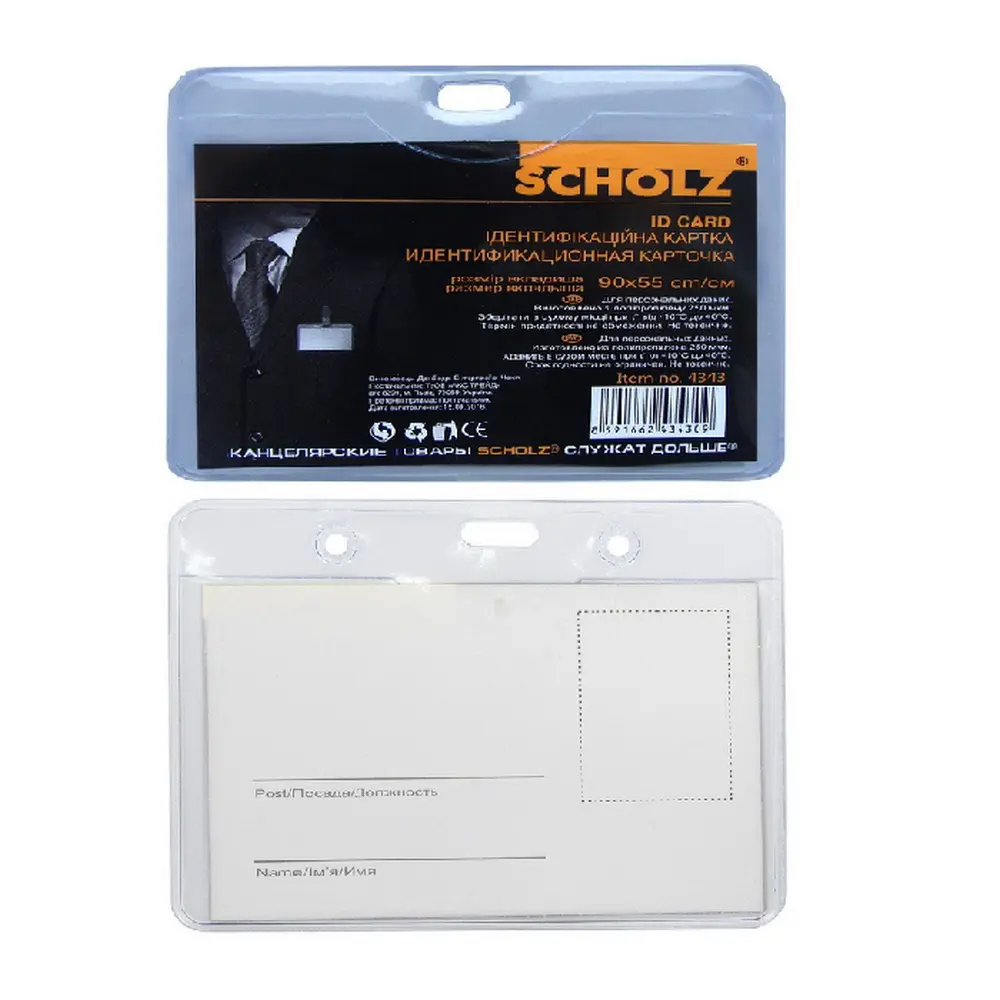 Бейдж горизонтальний 105×70 мм SCHOLZ 4341 — зручний пластиковий тримач для ідентифікаційних карток, пропусків чи бейджів. Має прозору глянсову поверхню, що чітко відображає текст і захищає вставку від пилу та вологи. Виготовлений із міцного ПВХ, не деформується та довго зберігає форму. Підходить для кріплення за допомогою кліпси, шнурка чи рулетки. Ідеальний вибір для конференцій, офісів, виставок, навчальних закладів і подій.