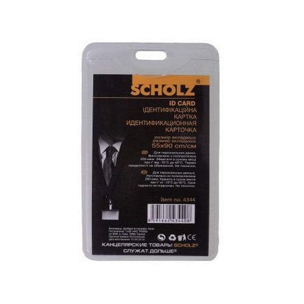 Бейдж ідентифікатор вертикальний Scholz (4344/10), розмір 55х90 мм – зручне рішення для офісу, конференцій та виставок. Прозорий пластик забезпечує чітку видимість інформації, а міцний матеріал гарантує довговічність. Ідеальний для використання з кліпсами, шнурками або холдерами.