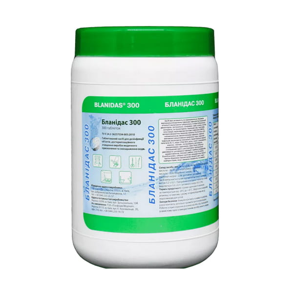 Бланідас 300 у таблетках – ефективний дезінфікуючий засіб для санітарної обробки поверхонь, обладнання та інструментів. Підходить для медичних, навчальних та побутових закладів. Простий у використанні та високоефективний проти бактерій, вірусів і грибків.