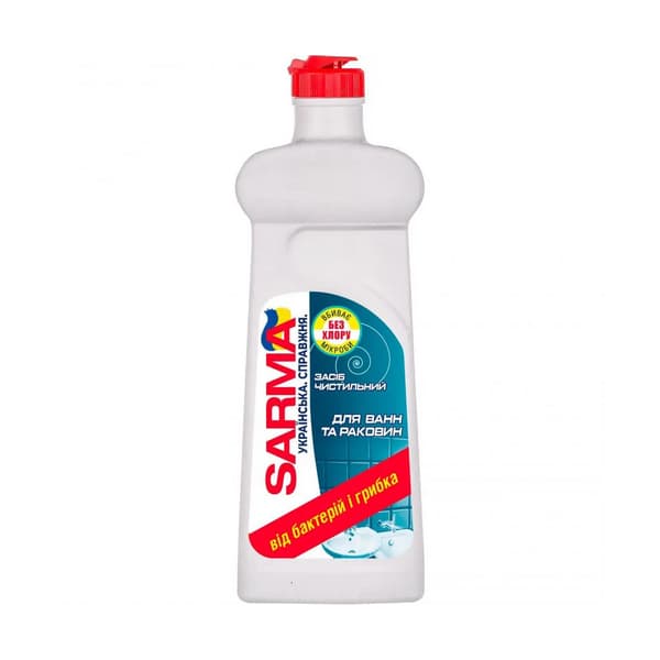 Чистячий засіб “Sarma” для ванн та раковин (500 мл) ефективно видаляє забруднення, вапняний наліт та мильні сліди. Завдяки активній формулі, засіб легко справляється з брудом, повертаючи поверхням блиск та чистоту. Підходить для використання на різних типах поверхонь у ванній кімнаті.