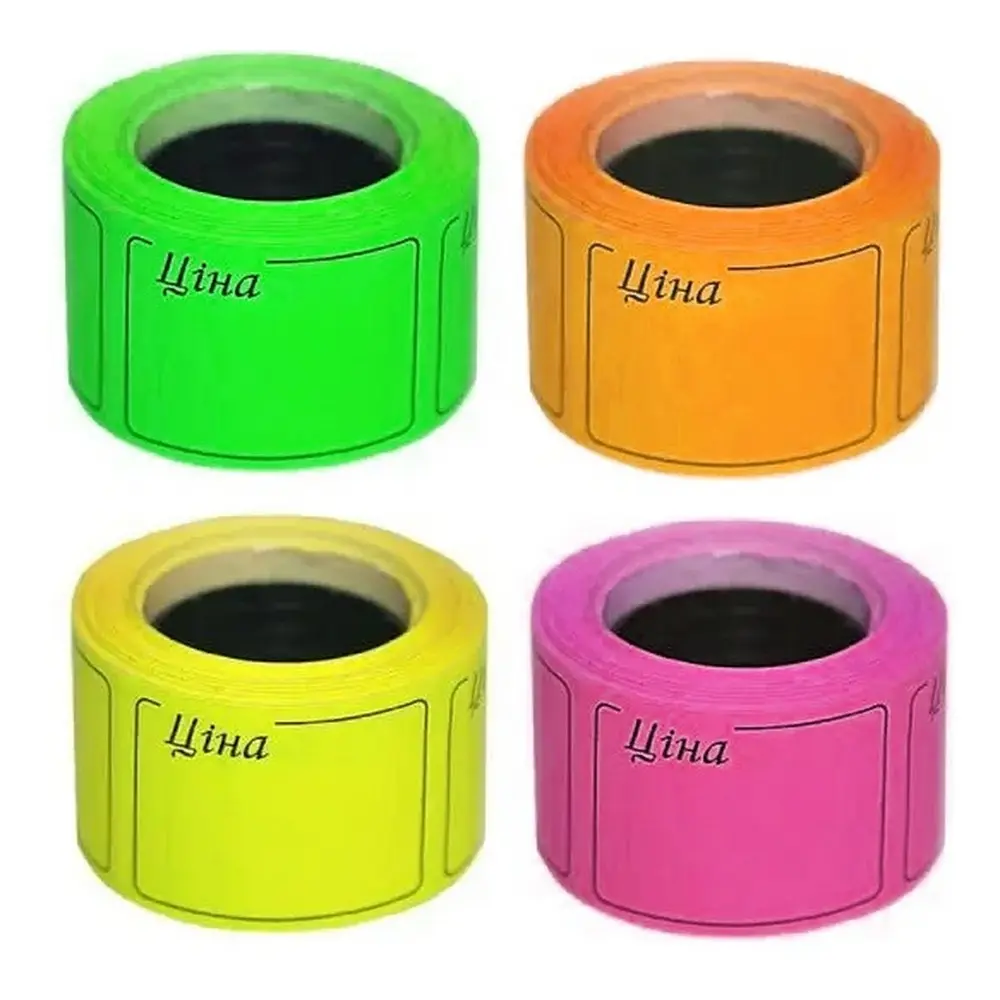 Цінник прямокутний 29×36 мм, довжина стрічки 3 м — самоклеюча етикетка для маркування товарів. Легко наноситься на різні поверхні, ідеально підходить для магазинів, складів та офісів.