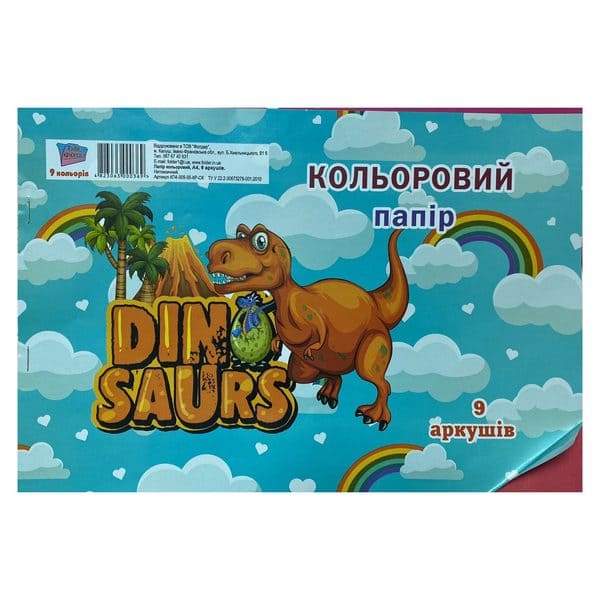 Папір кольоровий Dinо Saurs . 9 кольорыв/9аркушів.