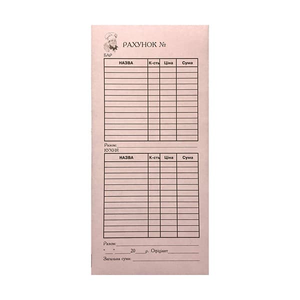 Відмінний вибір для офіціантів, рахунок-офіціанта (самокопіюючий) у форматі А6 з 100 аркушами. Зручний та компактний, він дозволяє легко вести облік замовлень та взаємодіяти з клієнтами. З кожним замовленням отримайте чітку копію безпосередньо на рахунок, щоб уникнути будь-яких непорозумінь. Практичний і ефективний інструмент для вашого бізнесу.