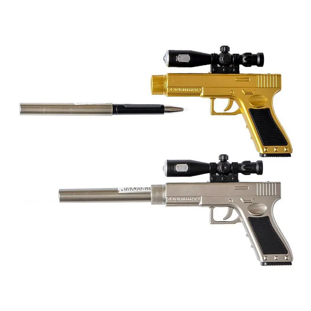 Ручка гелева “Пістолет” з ліхтариком, синя (DE-500) — оригінальна гелева ручка у вигляді пістолета з вбудованим світлодіодом. Пише м’яко та яскраво, стане цікавою знахідкою для дітей і подарунком для колекціонерів.