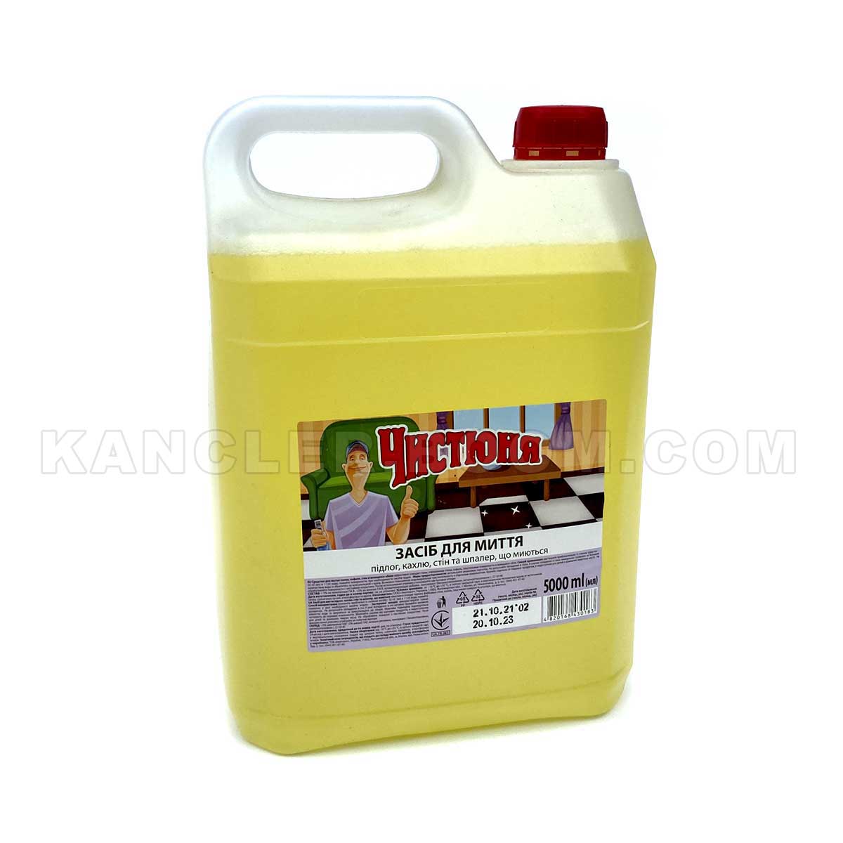 Засіб для миття підлог “Чистюня” об’ємом 5 літрів — це універсальний миючий засіб, який підходить для очищення різних видів покриттів: плитки, ламінату, лінолеуму тощо.